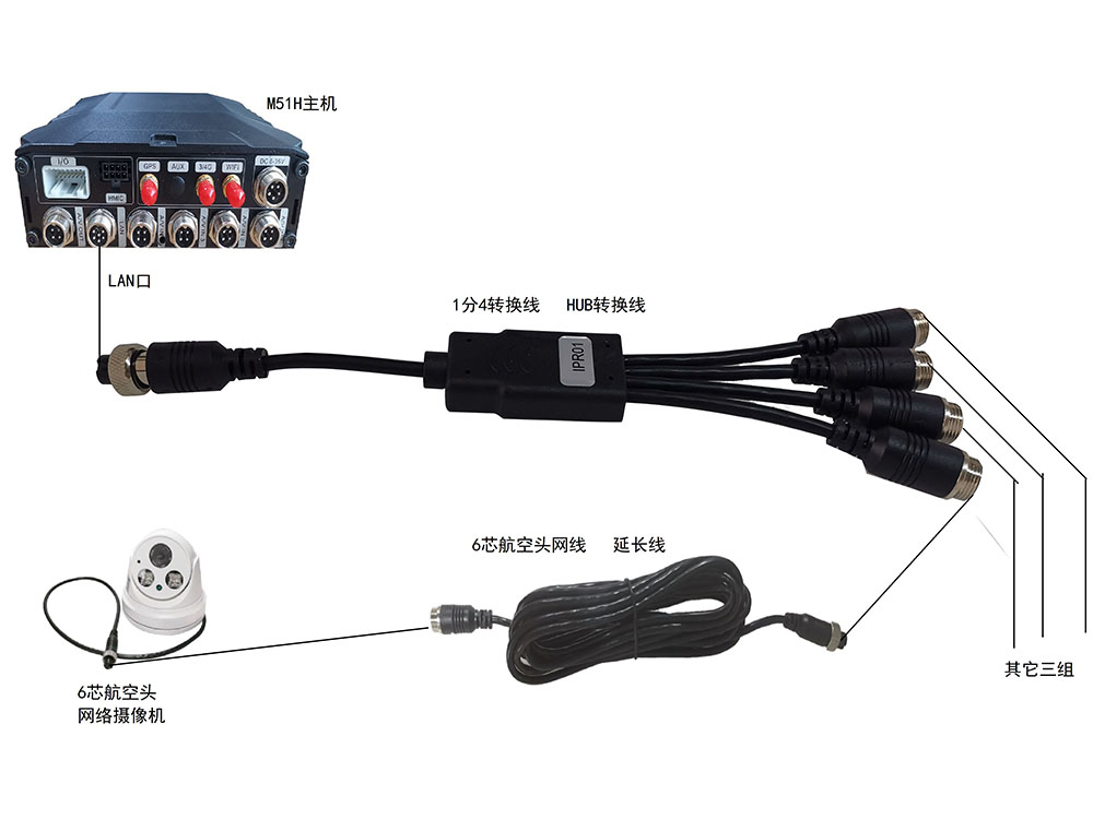 連接IPC網絡高清攝像機實現車載NVR功能,接線示意圖: