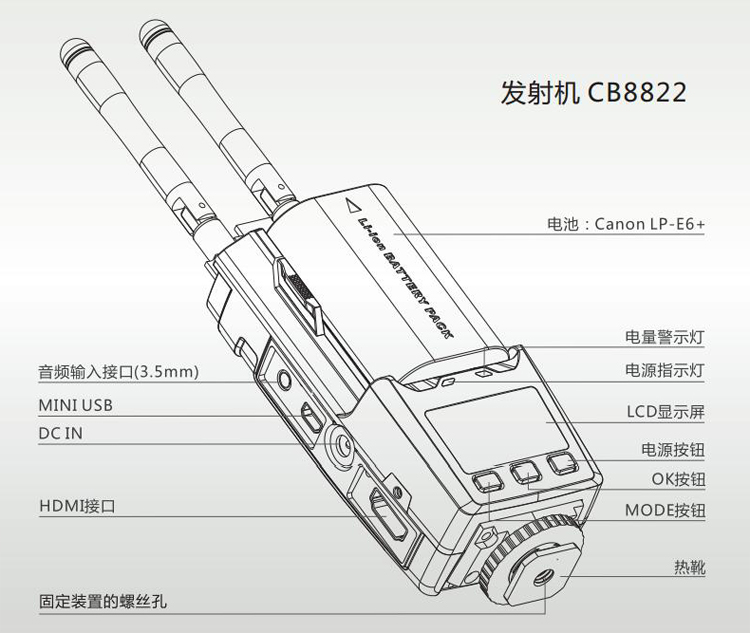 Support "hot shoe" and 1/4 inch screw hole installation standard interface design, easy to install and fix the transmitter;